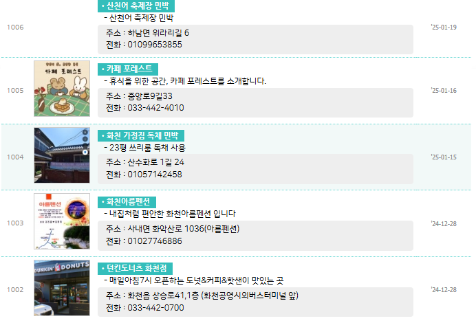 📌 화천군 숙박업소 정보 확인